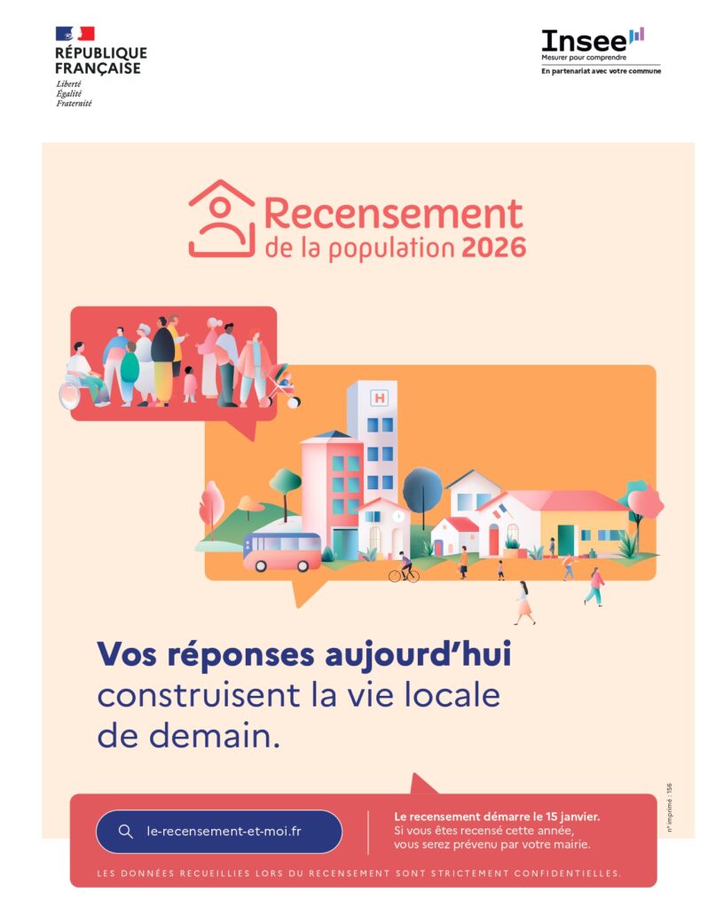 Le recensement de la population est un acte civique, obligatoire, qui concerne tout le monde et qui profite à tous. C’est grâce aux données collectées lors du recensement de la population que les petits et grands projets qui vous concernent peuvent être pensés et réalisés. Le recensement permet d’établir la population officielle de chaque commune. Il fournit également des informations sur les caractéristiques de la population : âge, profession, moyens de transport utilisés, conditions de logement etc.