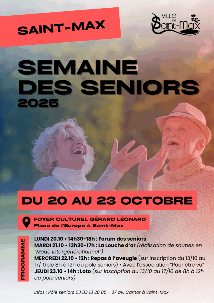 Venez profiter d’un moment convivial et enrichissant, et découvrez tout ce que la ville de Saint-Max propose pour vous accompagner au quotidien.