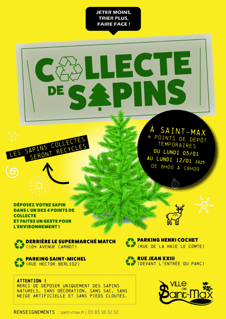 Merci de déposer uniquement des sapins naturels, sans décoration, sans sac, sans neige artificielle et sans pieds cloutés.