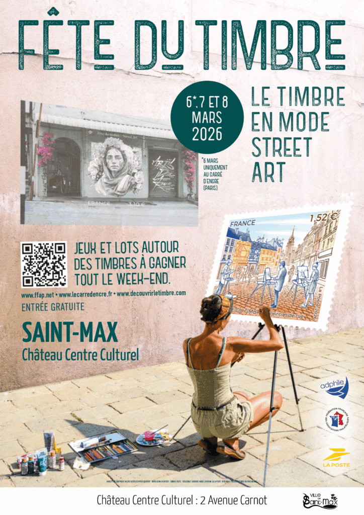 Le Club Philatélique Lorrain a le plaisir d’annoncer la prochaine Fête du Timbre, qui se tiendra les 7 et 8 mars 2026 au Château Centre Culturel de Saint-Max, dans les salons Garnier.